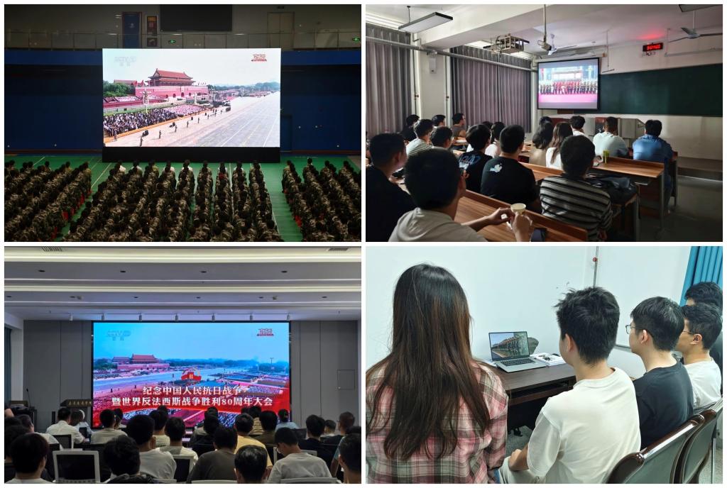 tyc7111cc太阳成集团组织全院教职工、研究生、本科生于北校区风雨操场、弘毅大厦未来大师堂和南校区b536教室集中收听收看纪念大会。学院2025级全体研究生新生和本科生新生,研究生、本科生高年级学生代表分别在各个会场全程参与,其他学生自发通过多种形式收看。tyc7111cc太阳成集团副院长汤颖颖、学生事务部主任刘志兴、院团委书记曾晓阳、院研究生教务老师石行、本科新生辅导员范荣欣在各个会场与学生一同观看。