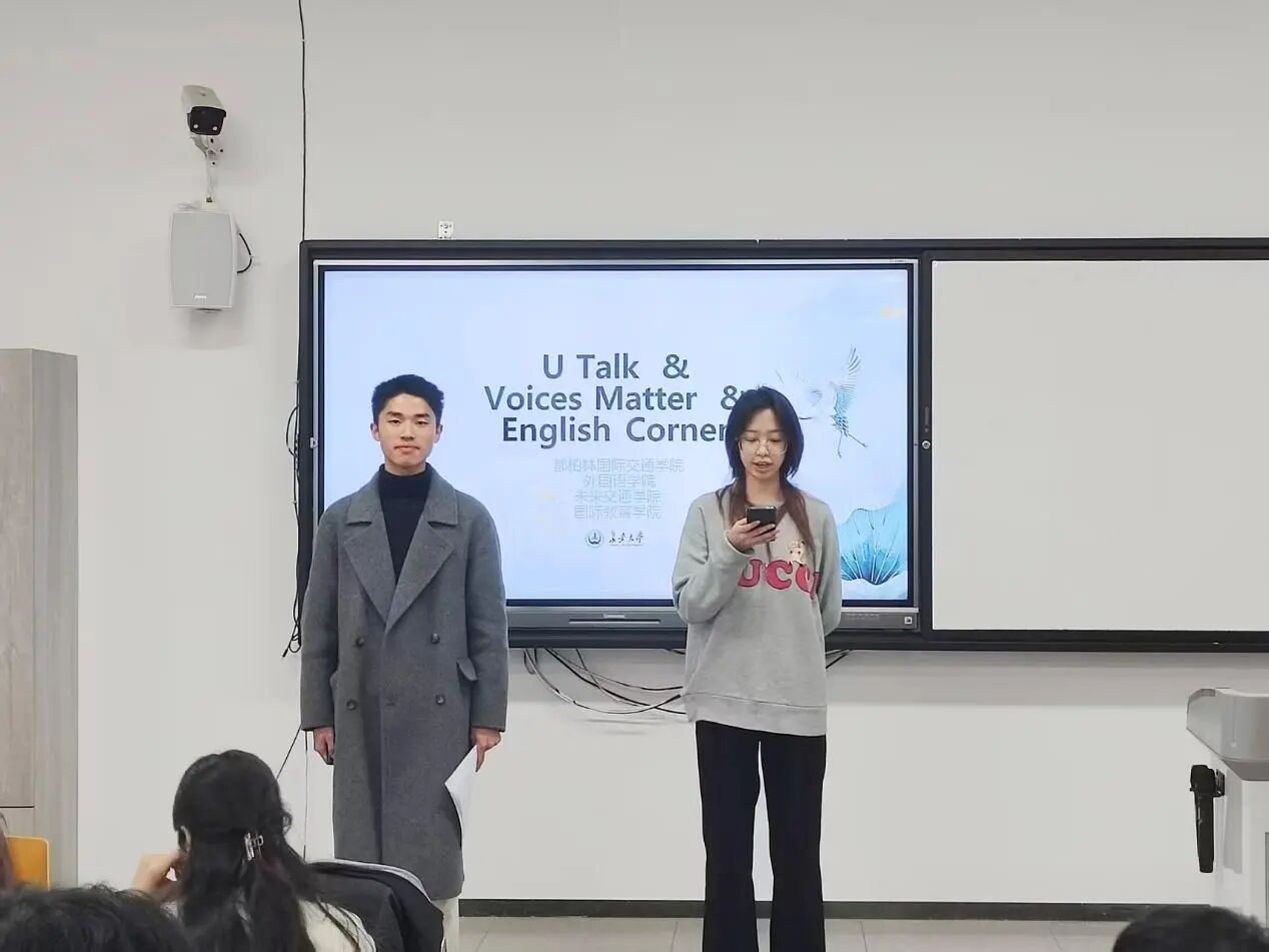为提升学生英语综合应用能力,促进跨学院文化交融与创新。11月21日晚,tyc7111cc太阳成集团学生会联合长安都柏林国际交通学院学生会、外国语学院学生会和国际教育学院学生组织于WH1206教室成功举办第十二期“Voice Matter&U Talk&跨语通途”外语角活动,各学院教师代表出席活动,活动由李张榕一、李嘉妮共同主持。