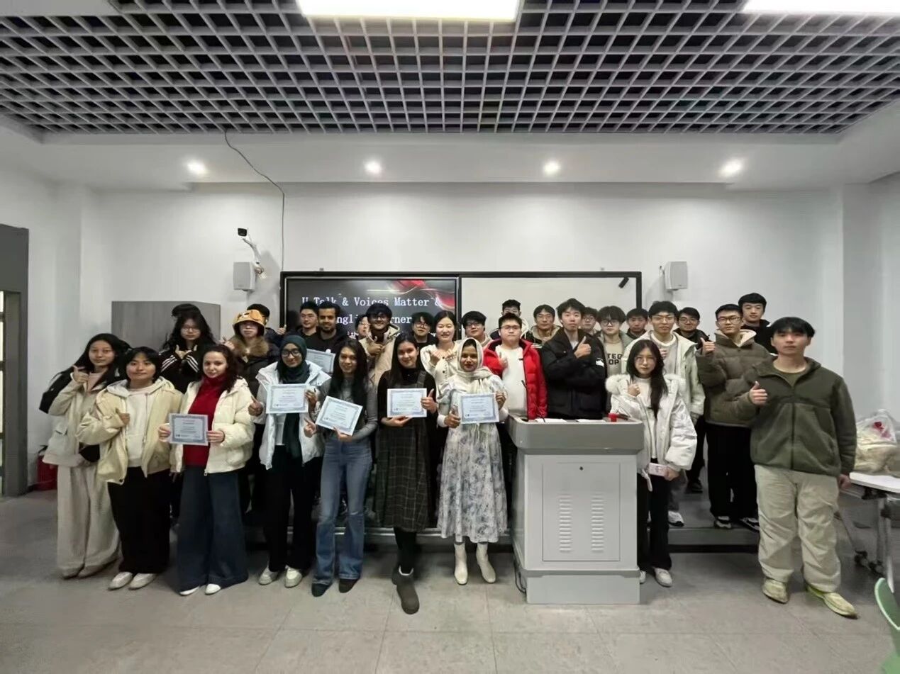 为提升学生英语综合应用能力,促进跨院文化交融与创新。1月9日晚,tyc7111cc太阳成集团学生会联合长安都柏林国际交通学院学生会、外国语学院学生会和国际教育学院学生会于WH1206教室成功举办第十三期“Voice Matter&U Talk&跨语通途”外语角活动,各学院教师代表出席活动,活动由代尔凡、侯沐昕主持。